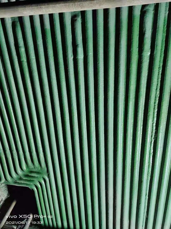 該爐為豫光金鉛余熱鍋爐,腐蝕結(jié)焦嚴(yán)重,影響安全運(yùn)行和經(jīng)濟(jì)運(yùn)行效益。在爐內(nèi)噴涂雙層納米功能薄膜材料,達(dá)到防腐蝕防結(jié)焦功能。