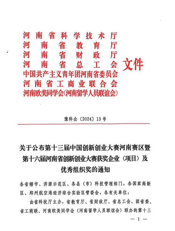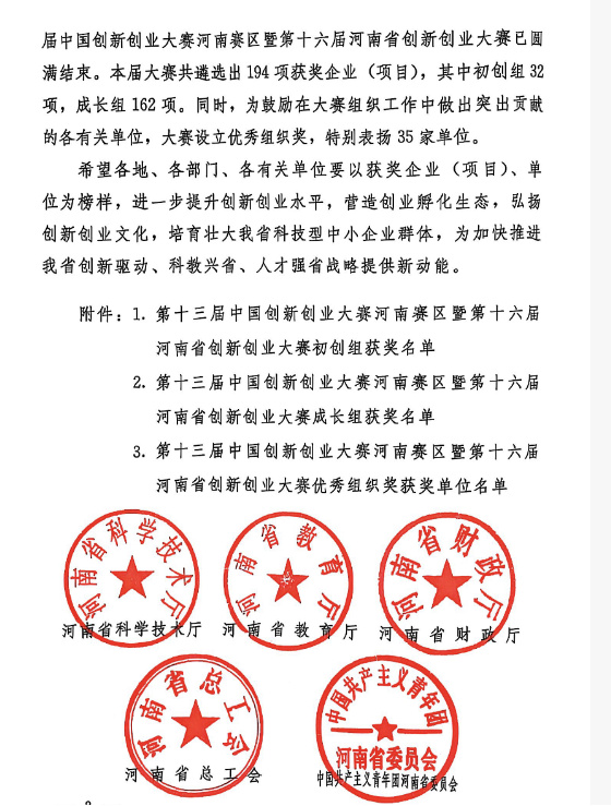 河南省創(chuàng)新創(chuàng)業(yè)大賽三等獎